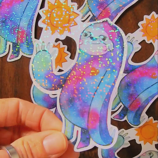 This little sloth guy is bringing good mood everywhere he goes. Look at his smile! Look at his glitter!